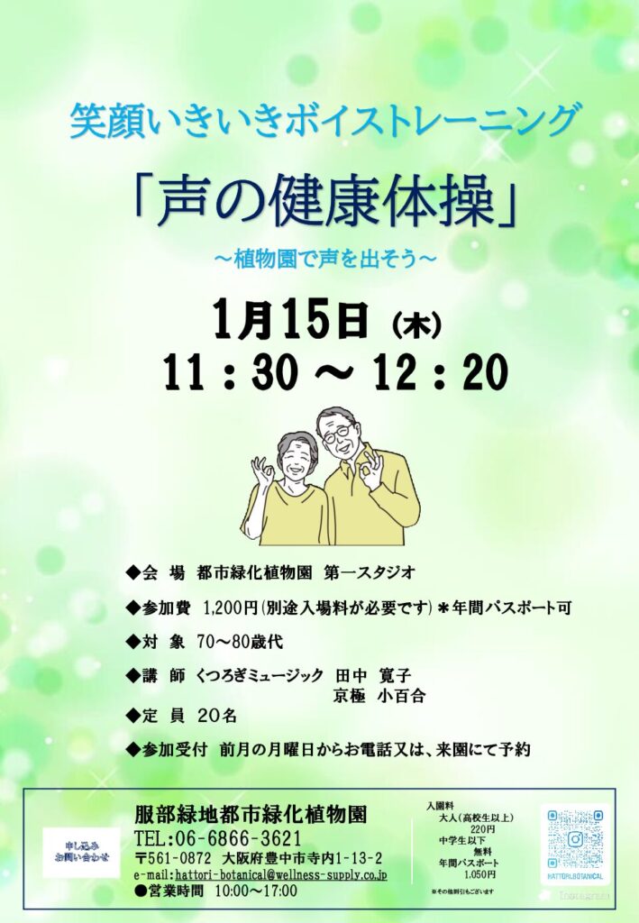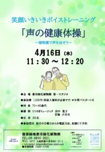 ![]() | 笑顔いきいきボイストレーニング「声の健康体操」 @都市緑化植物園 |