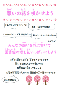 ![]() | 願いの花を咲かせよう @野畑図書館(〜3/31) |