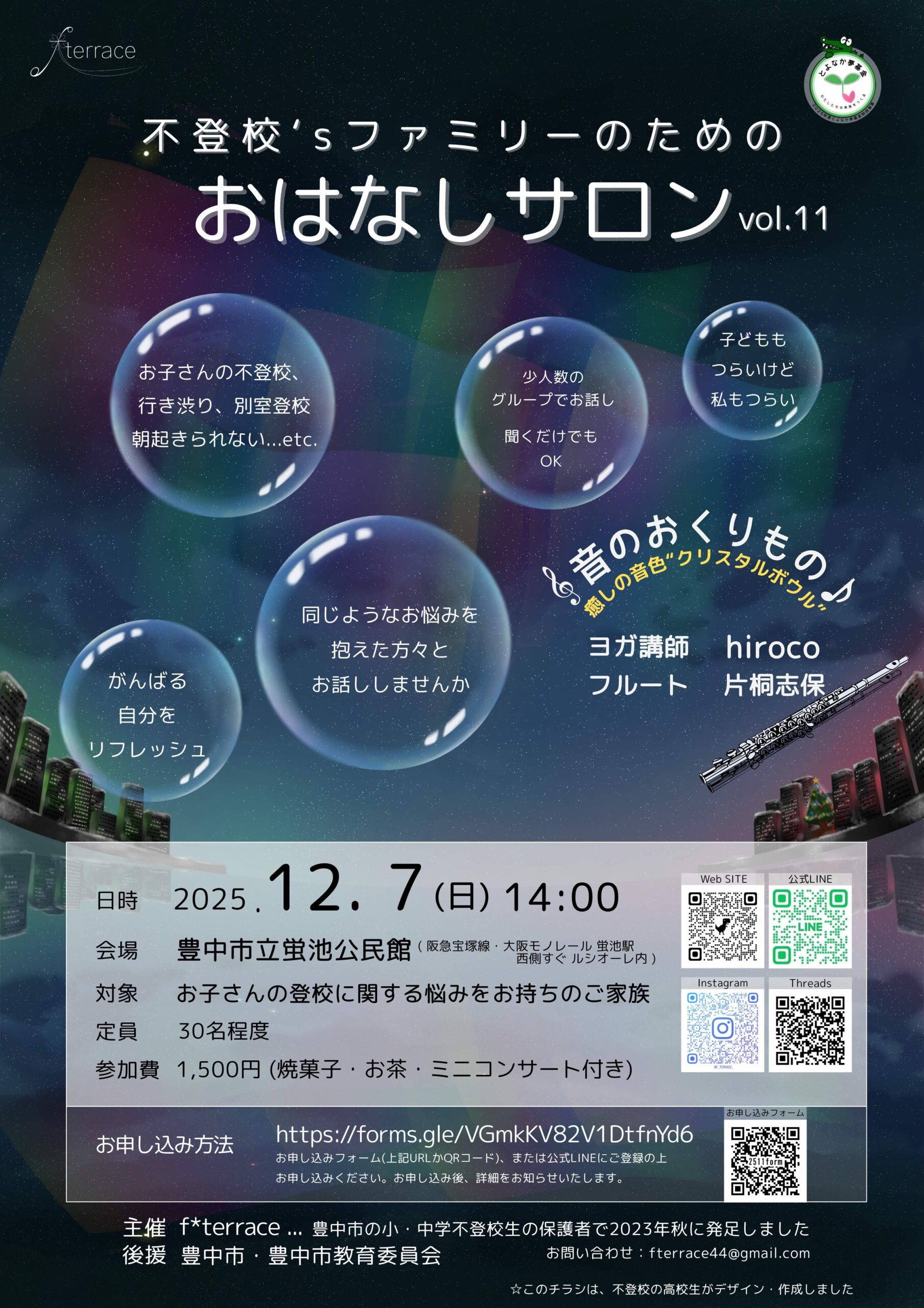 ![]() | 不登校’sファミリーのためのおはなしサロン @蛍池公民館 |