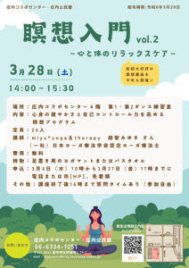 ![]() | 瞑想入門 -心と体のリラックスケア- @庄内コラボ |