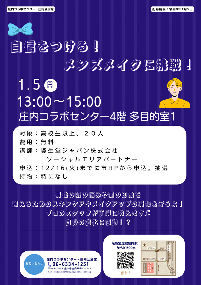 ![]() | 自信をつける!メンズメイクに挑戦! @庄内コラボセンター |